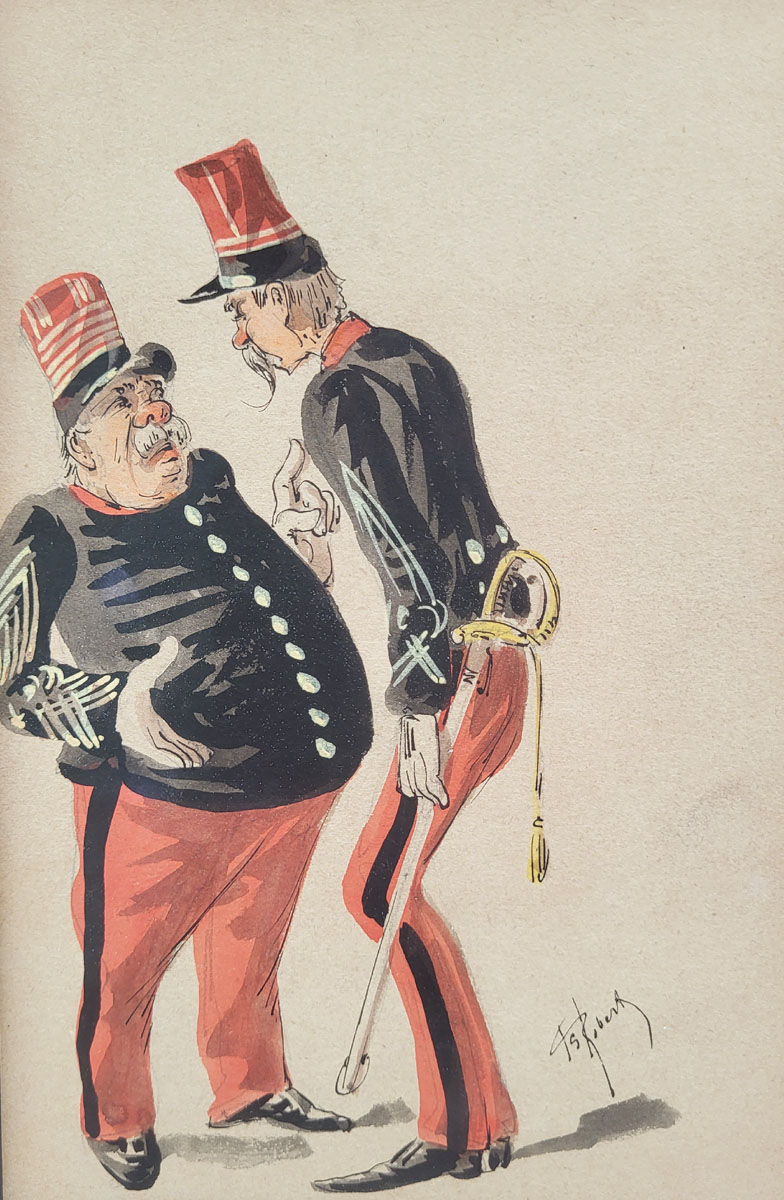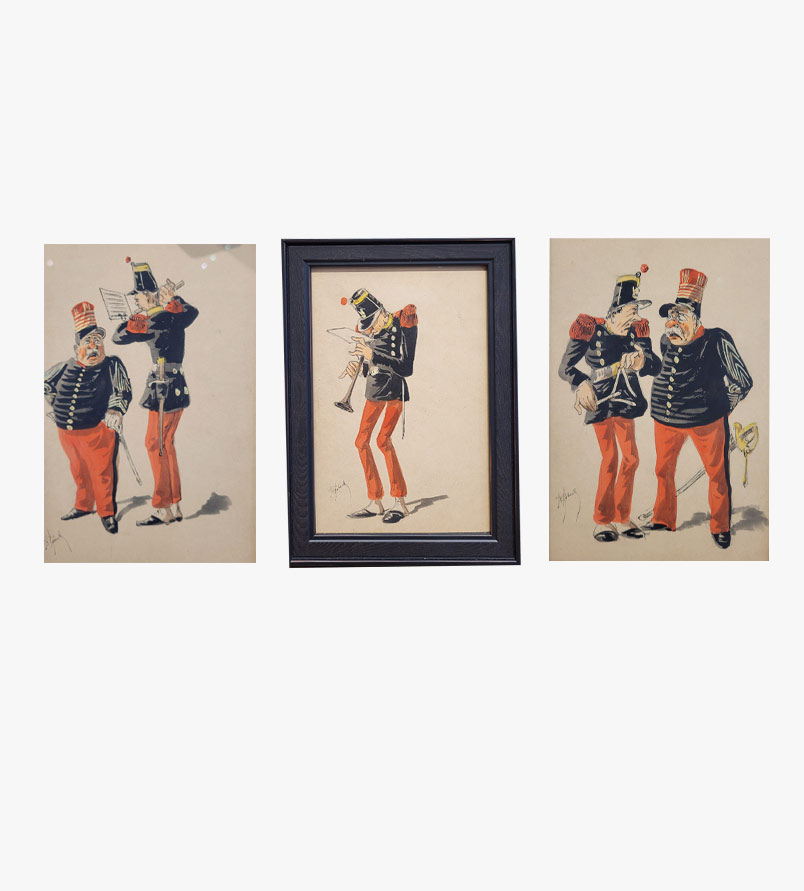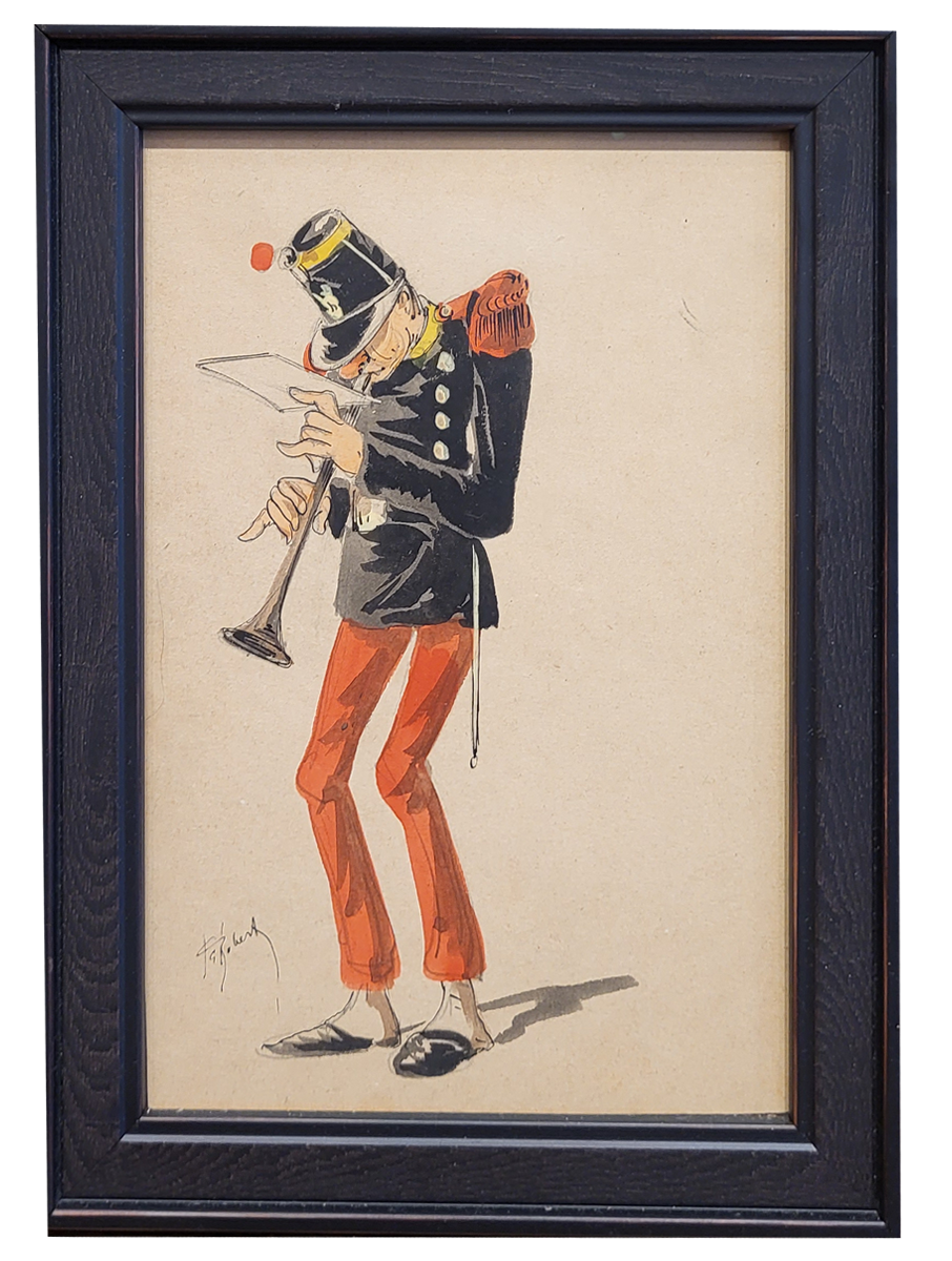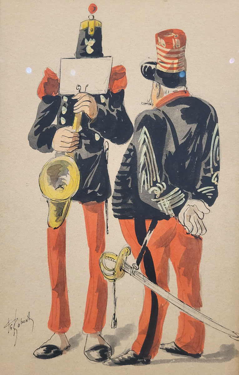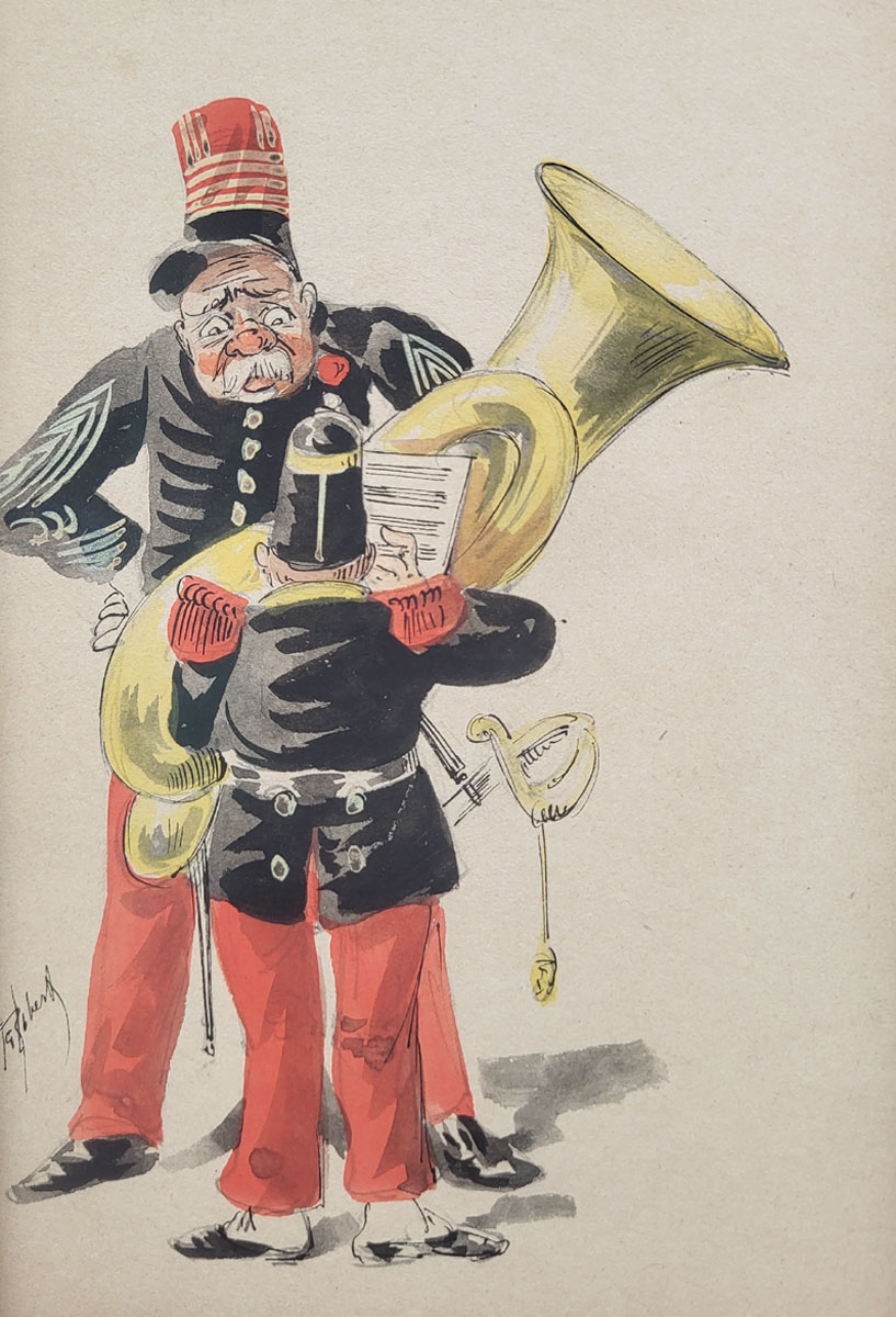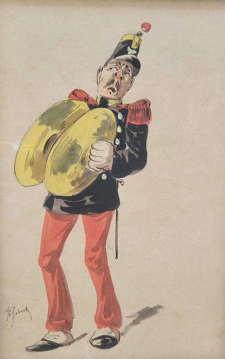 Aquarelle, Caricature Orchestre militaire par Robert | Galerie Saint Martin Antiquités Paris