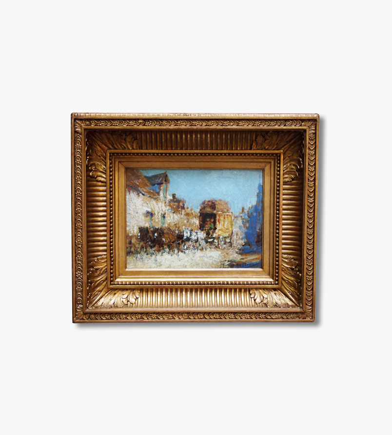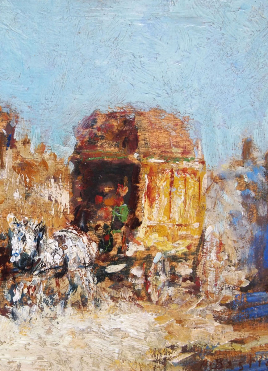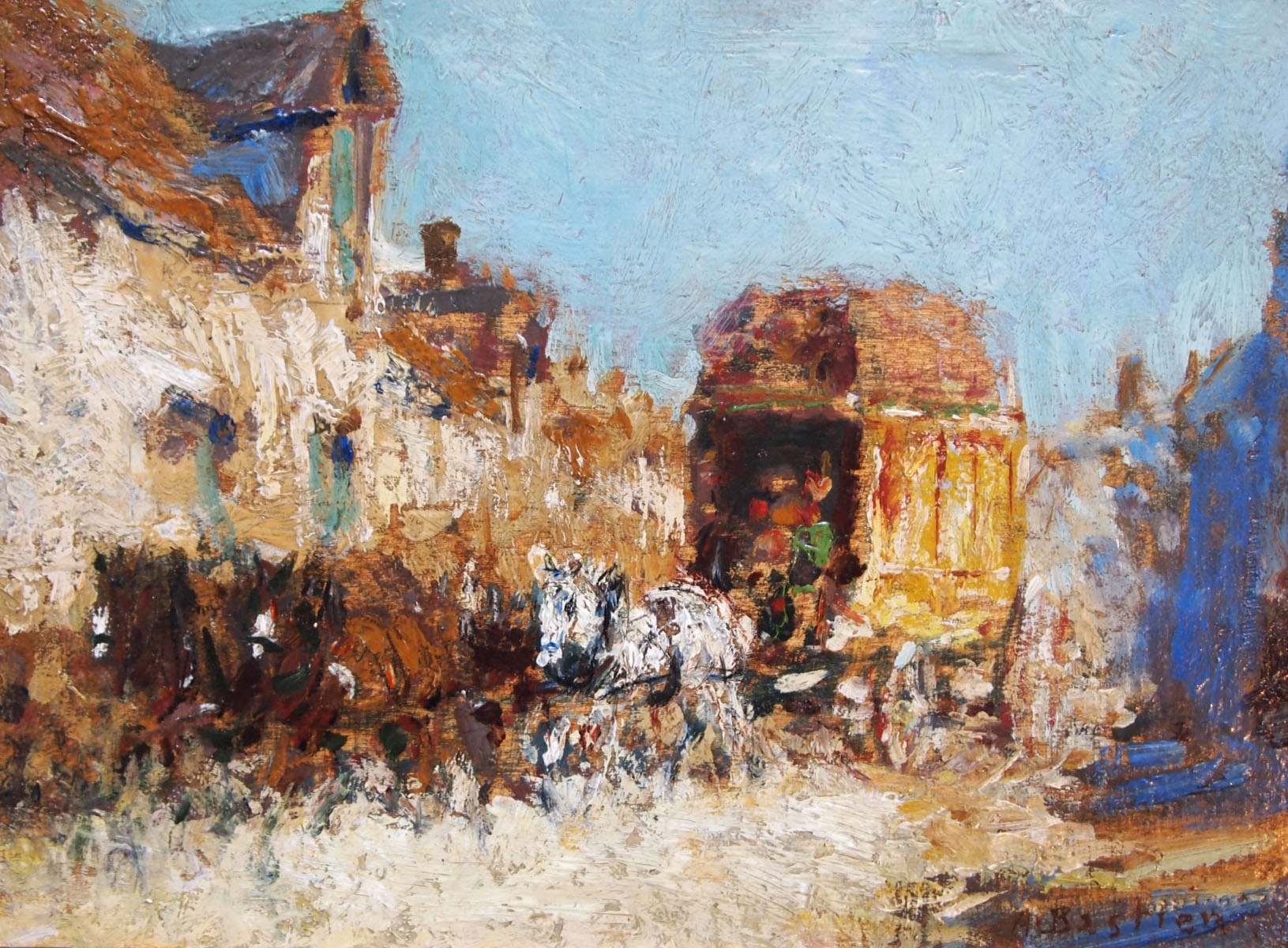 Huile sur panneau, La calèche par Alfred BASTIEN