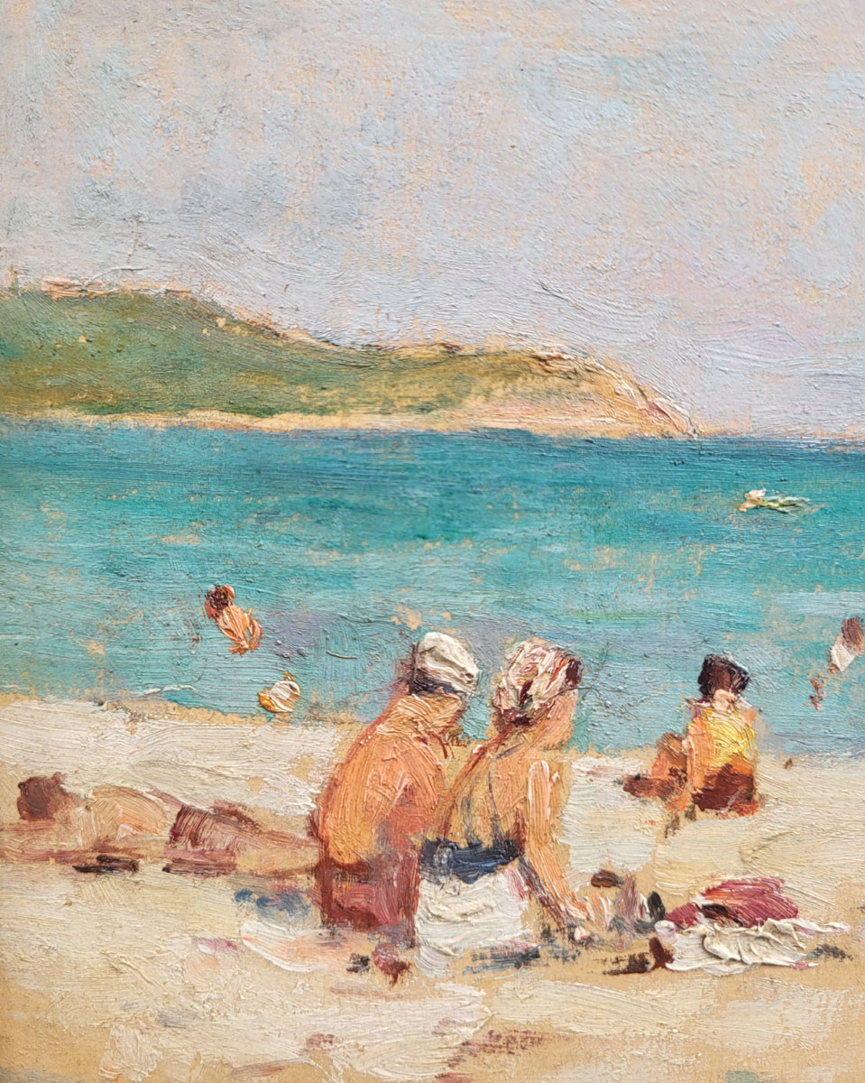 Huile sur carton, La plage à Toulon par Georges BINET