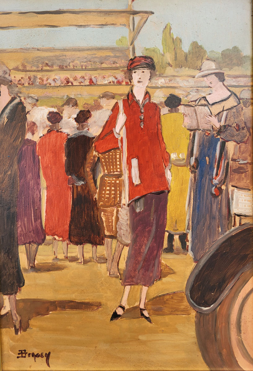 Huile sur panneau, Au rallye signé Bergen vers 1930