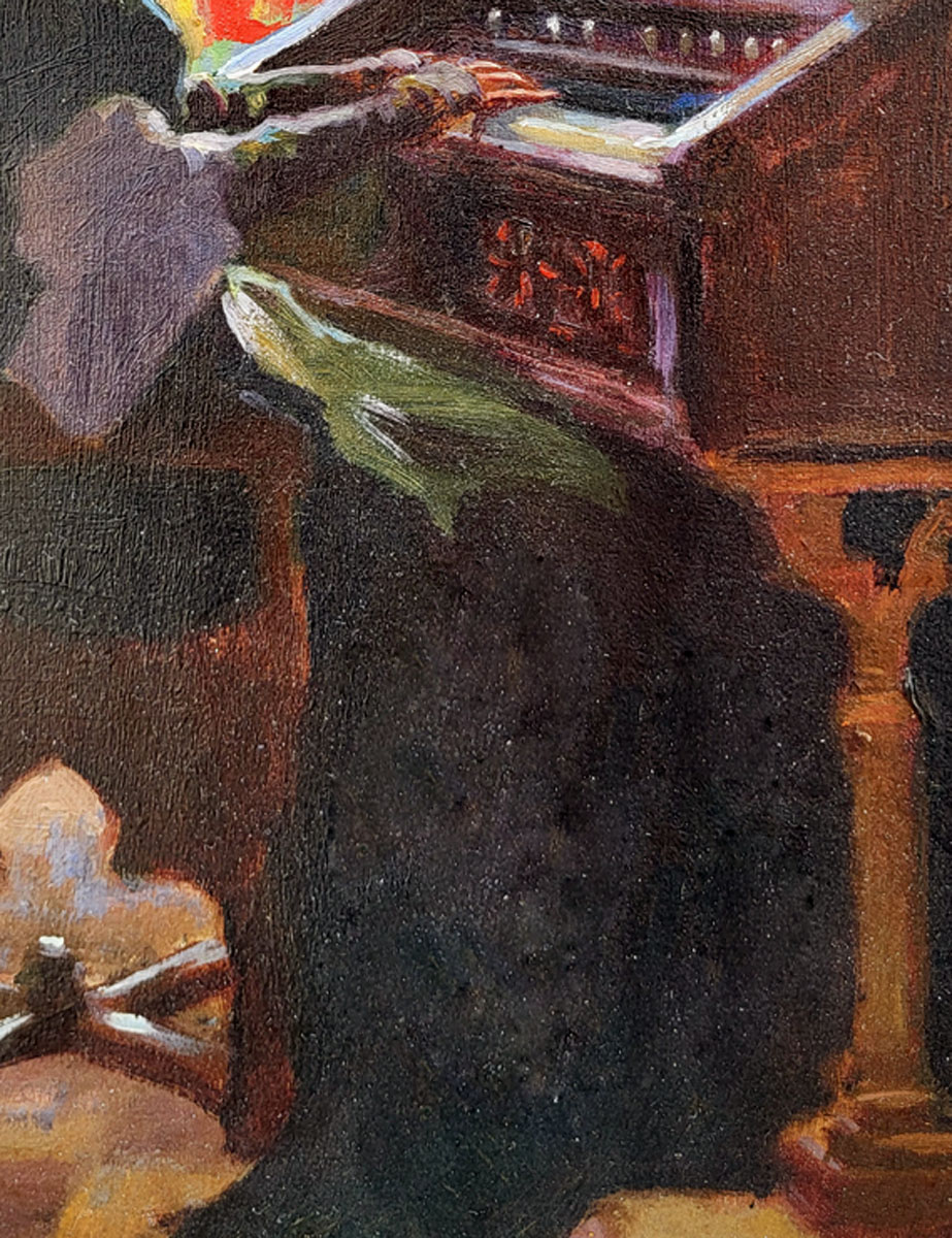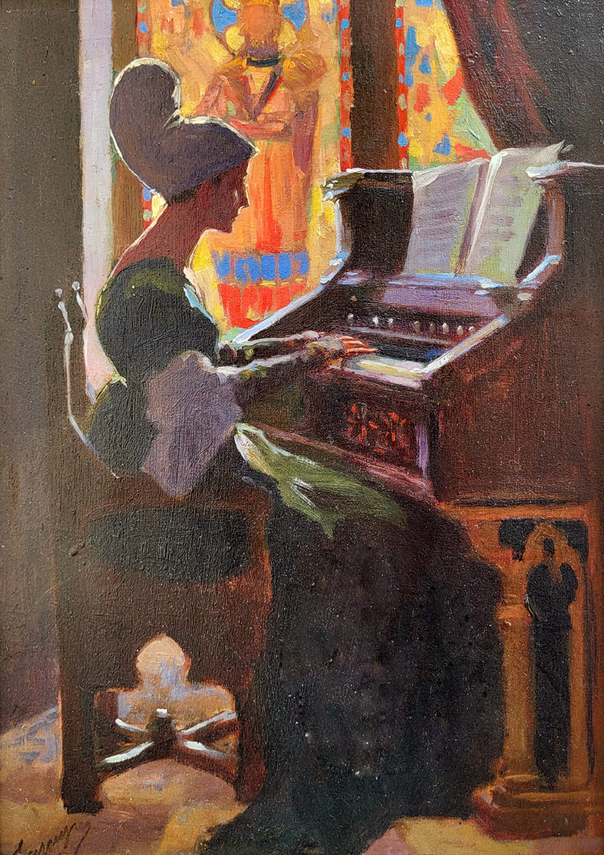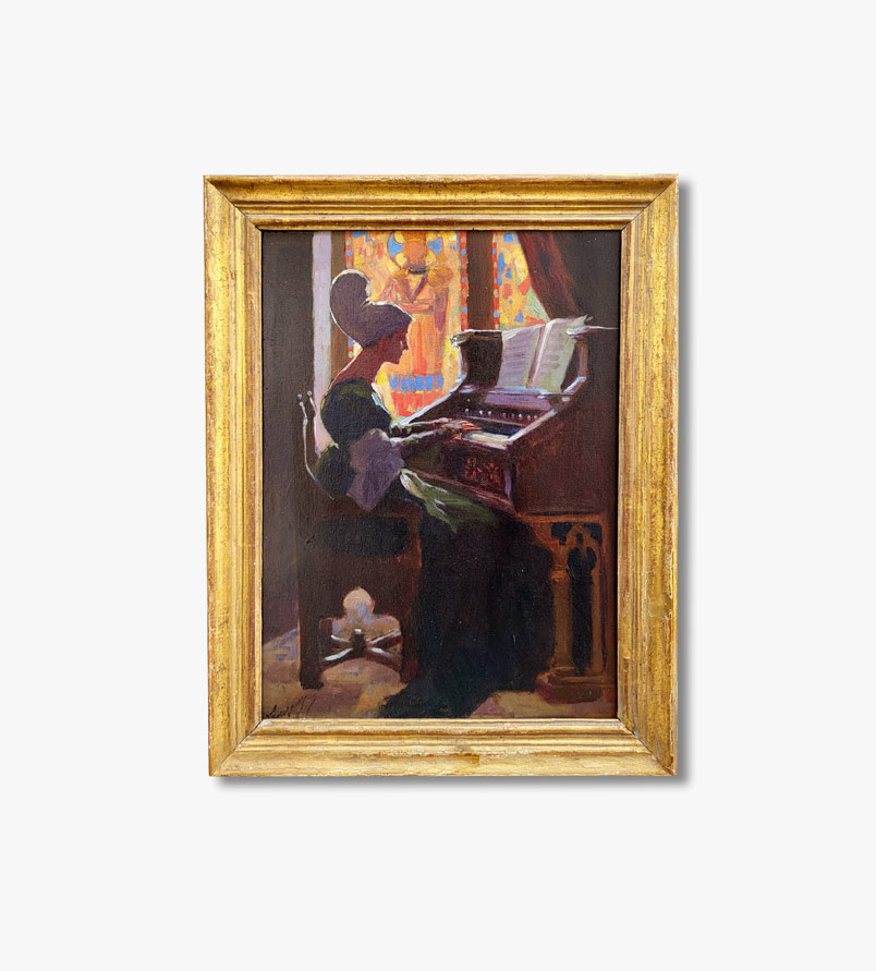 Huile sur panneau, Femme à l’orgue par Edmond LAPEYRE