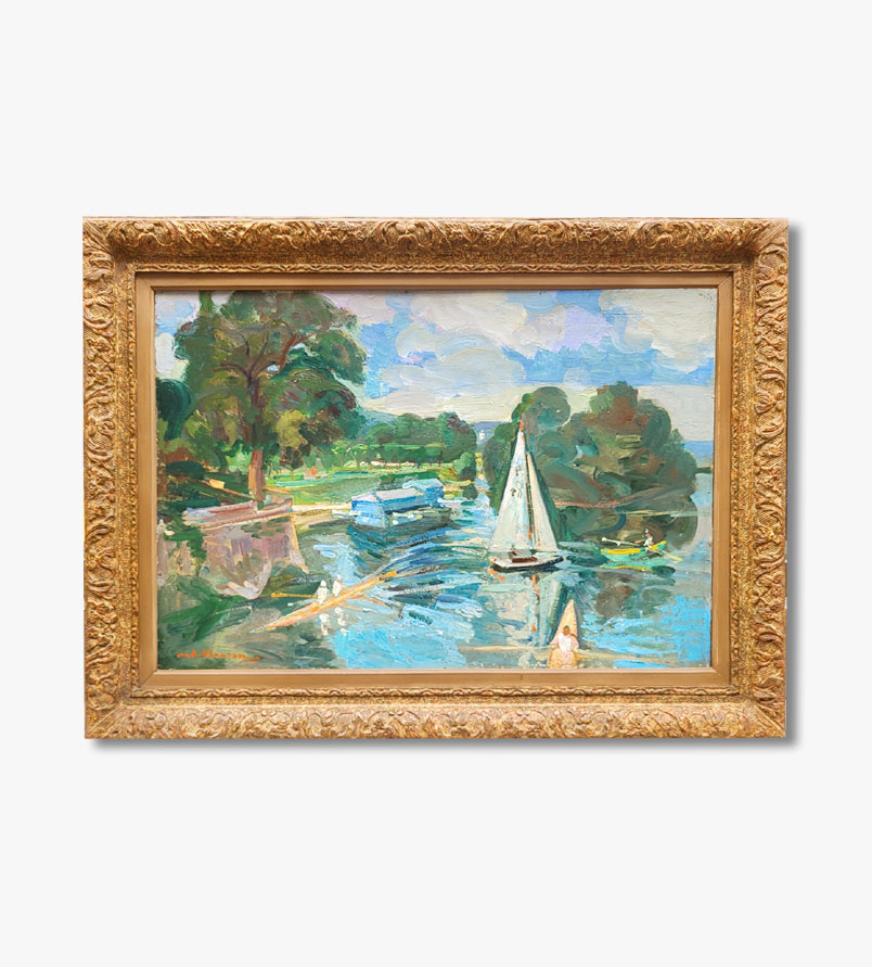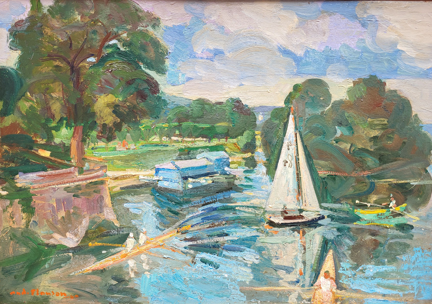 Une huile sur toile, Bord de marne par André PLANSON