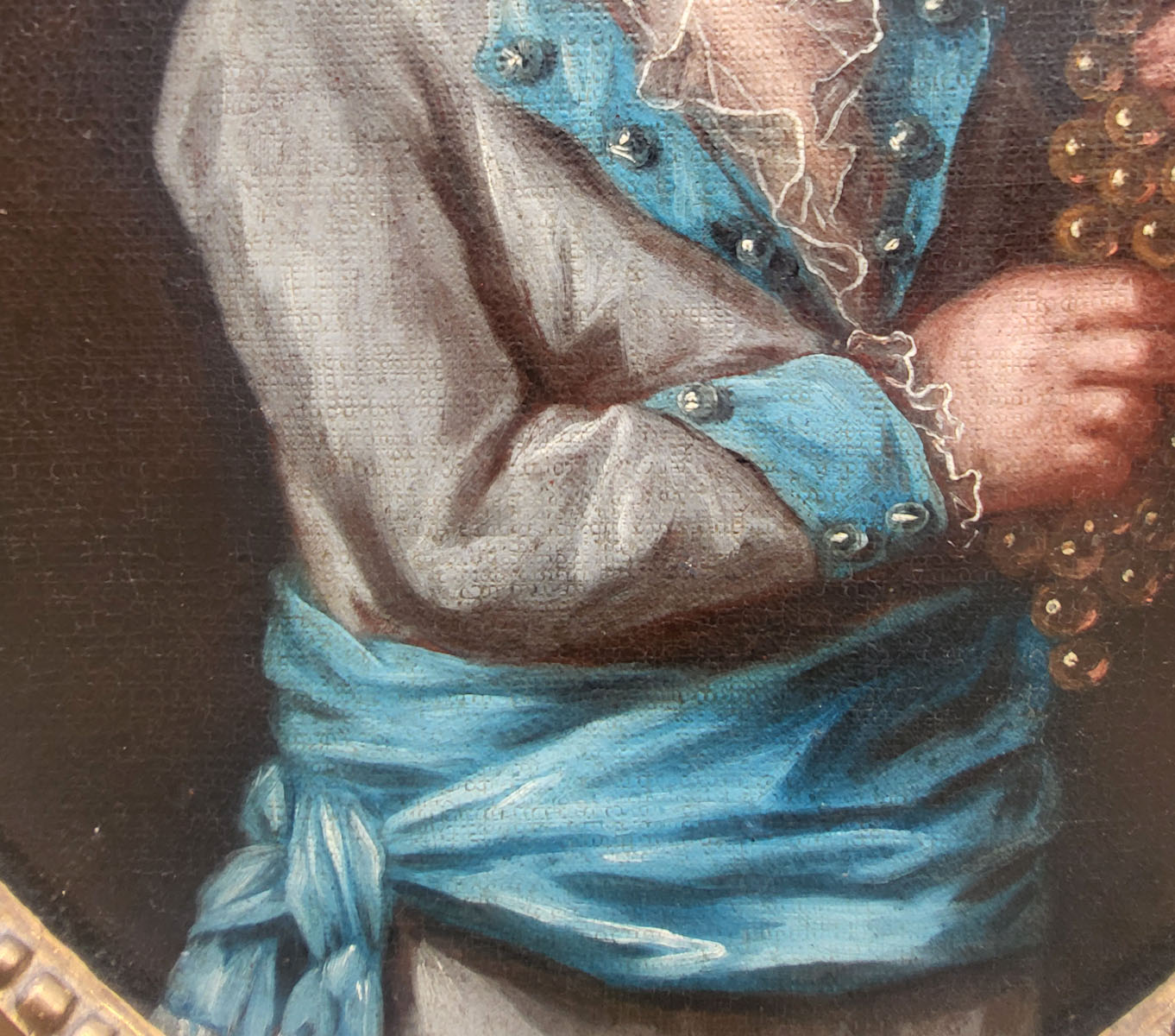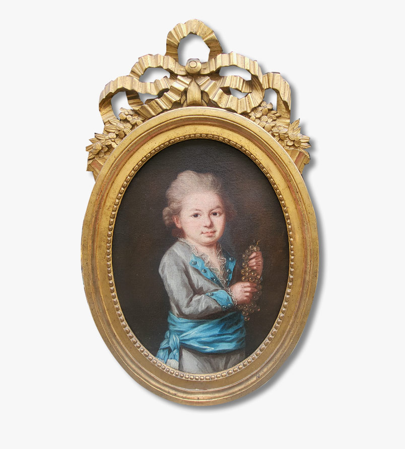Huile toile, Portrait Enfant à la grappe de raisin 18ème