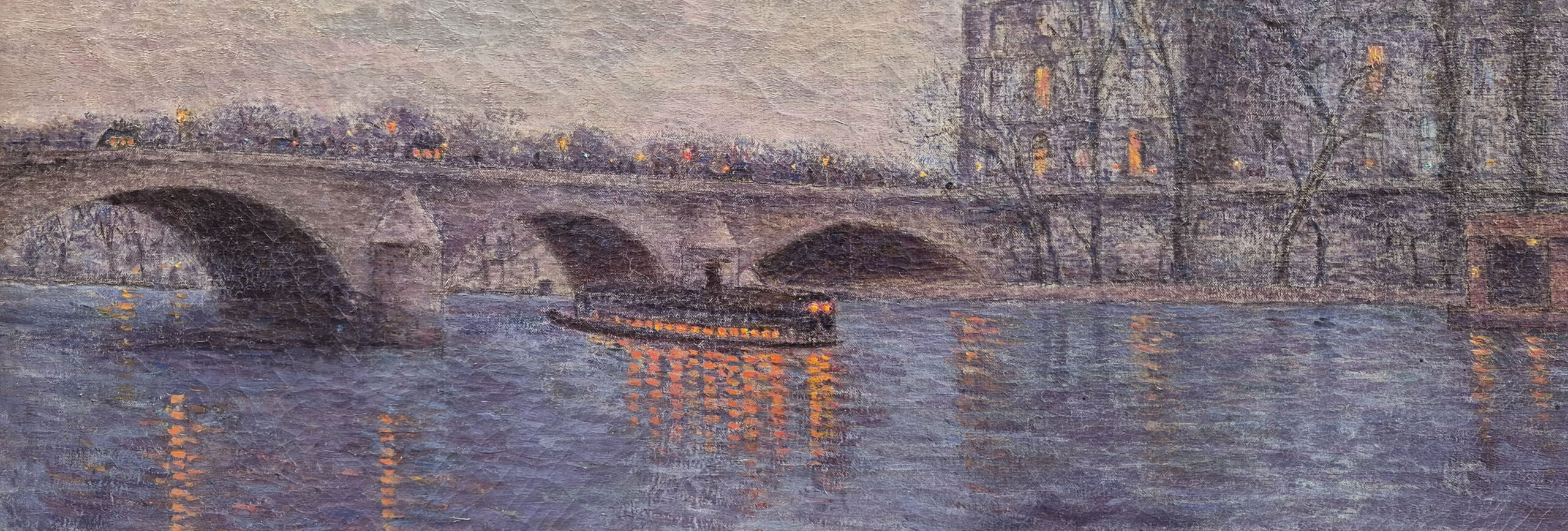 Cette œuvre délicate nous plonge dans l’atmosphère d’une soirée parisienne, sur les rives de la Seine.