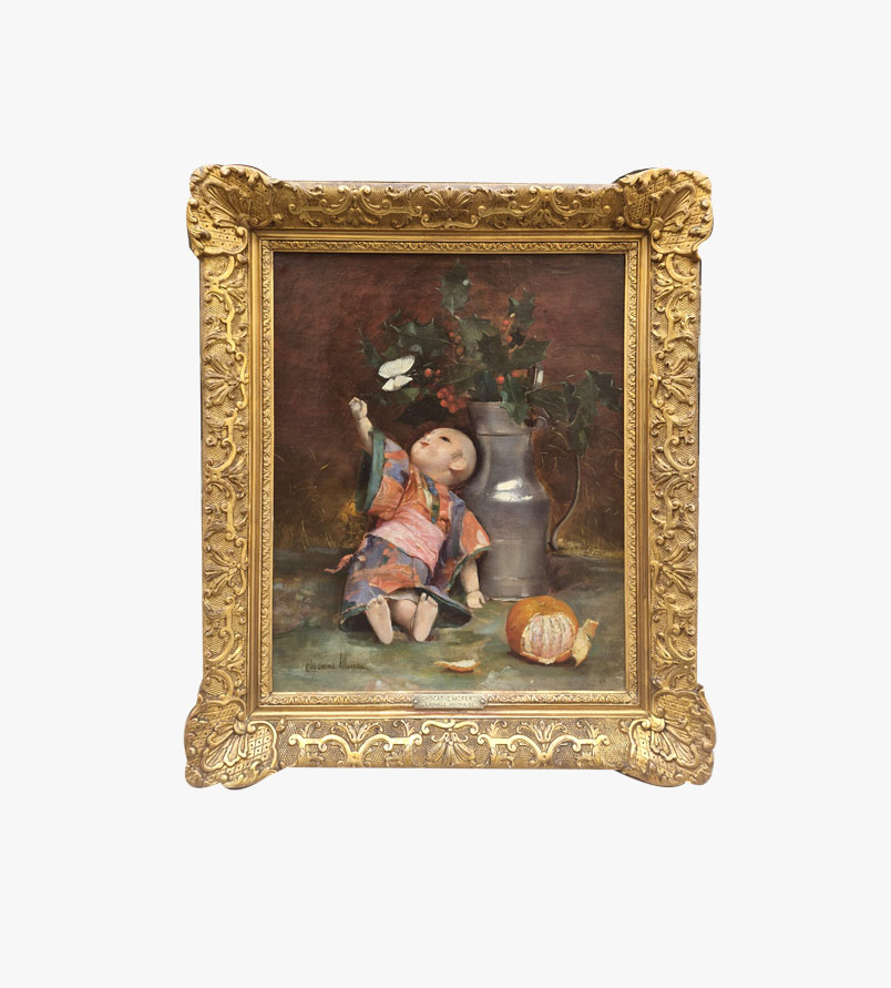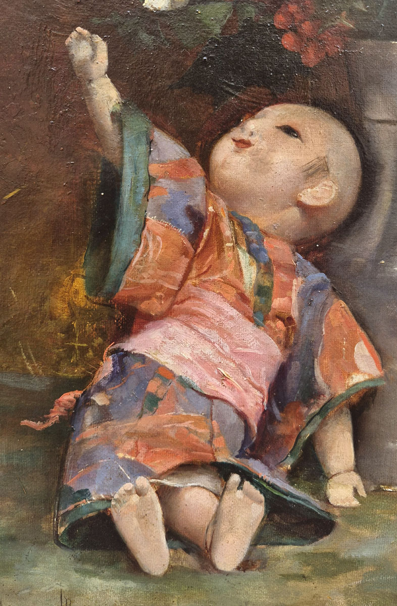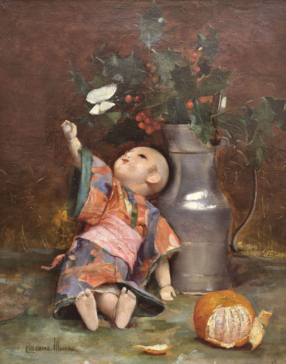 Huile sur toile, La poupée et le papillon par Paul CHOCARNE MOREAU | Galerie Saint Martin Antiquités Paris