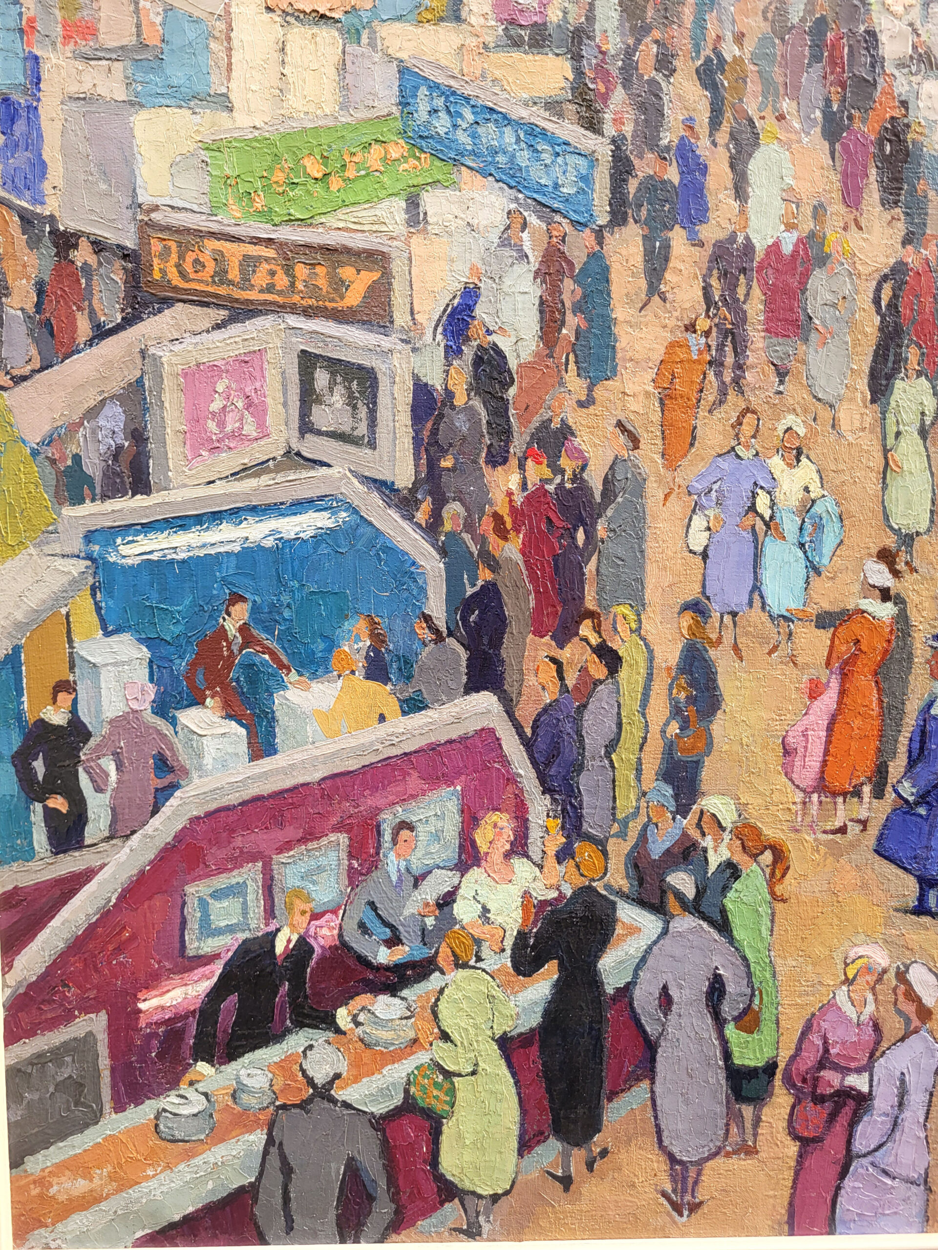 Son cadrage est serré, presque photographique, renforçant l’impression d’instantanéité : on ressent le mouvement des foules, les flux de visiteurs, l’agitation des couleurs.