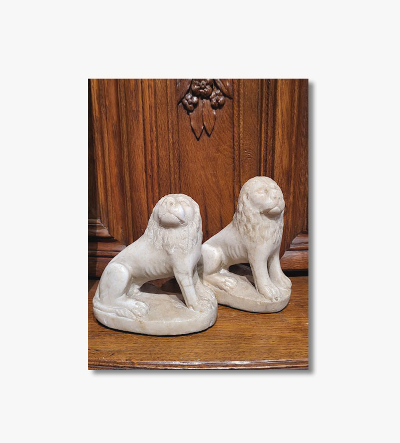 Paire de lions en marbre, 16e siècle
