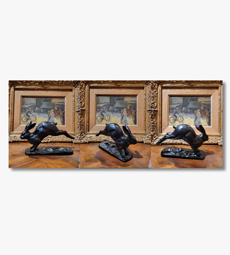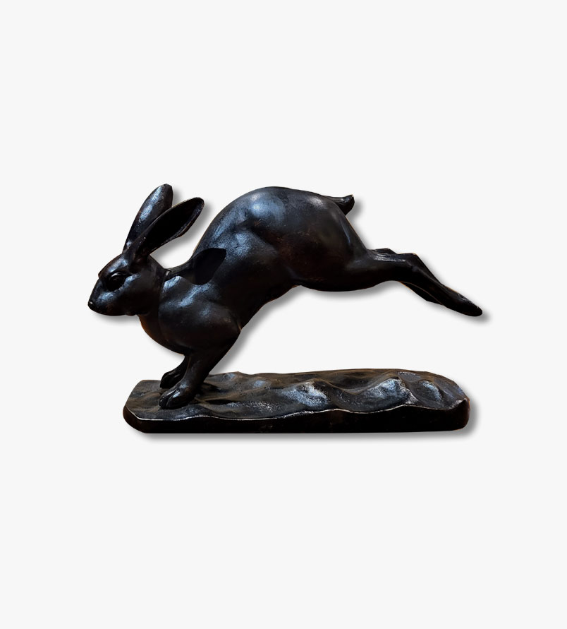 Notre lapin est captué par l’artiste dans en pleine course, avec les pattes arrière poussant puissamment contre le sol tandis que les pattes avant sont tendues vers l’avant. Très belle qualité Jolis détails