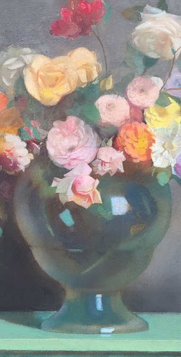 Un pastel, Nature-Morte au bouquet de fleurs par Lucien Victor de Scévola