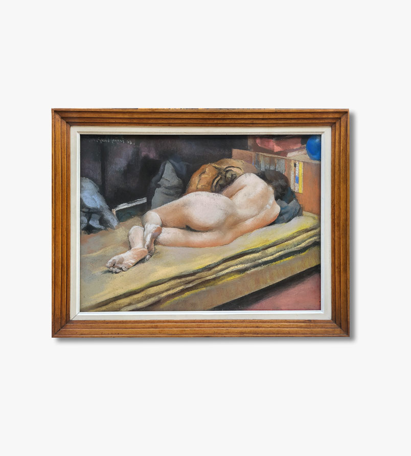Loin du nu posé ou théâtral, l’artiste capture un moment de repose presque un abandon, dans lequel se mêlent grâce et pudeur.