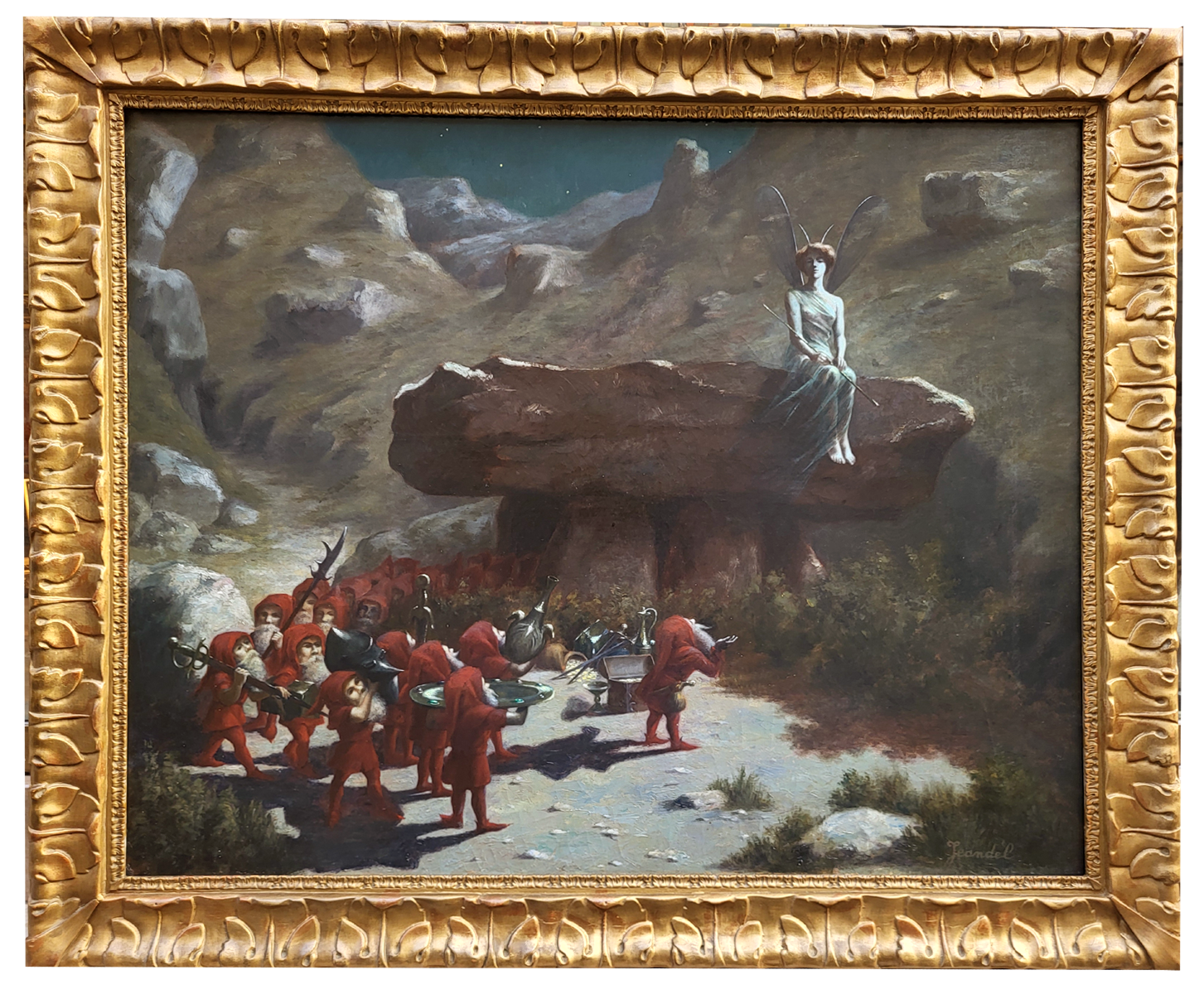 Huile toile, L’offrande à la fée par les korrigans par Charles François JEANDEL